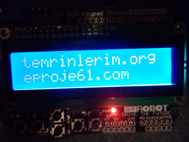 Bizim kullanacağımız lcd shieldin üzerinde DFROBOT LCD yazıyor. Bu kelime