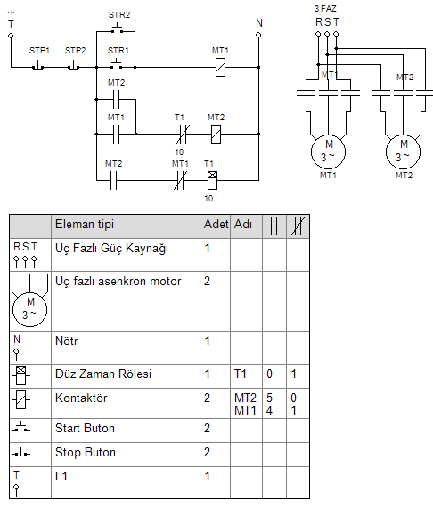 Başlatma butonu bırakılınca ikinci motor 10 saniye sonra duracaktır